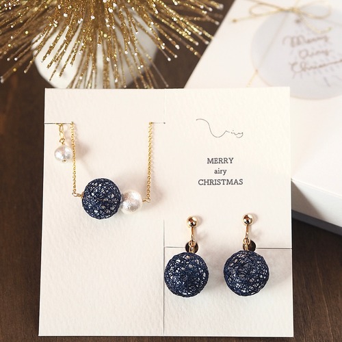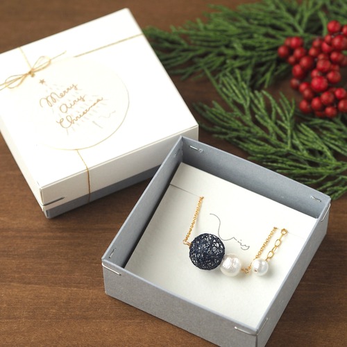 人気のネイビーカラー、シンプルで使いやすいピアス/イヤリングとネックレスのXmasコフレを作りました。