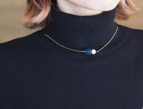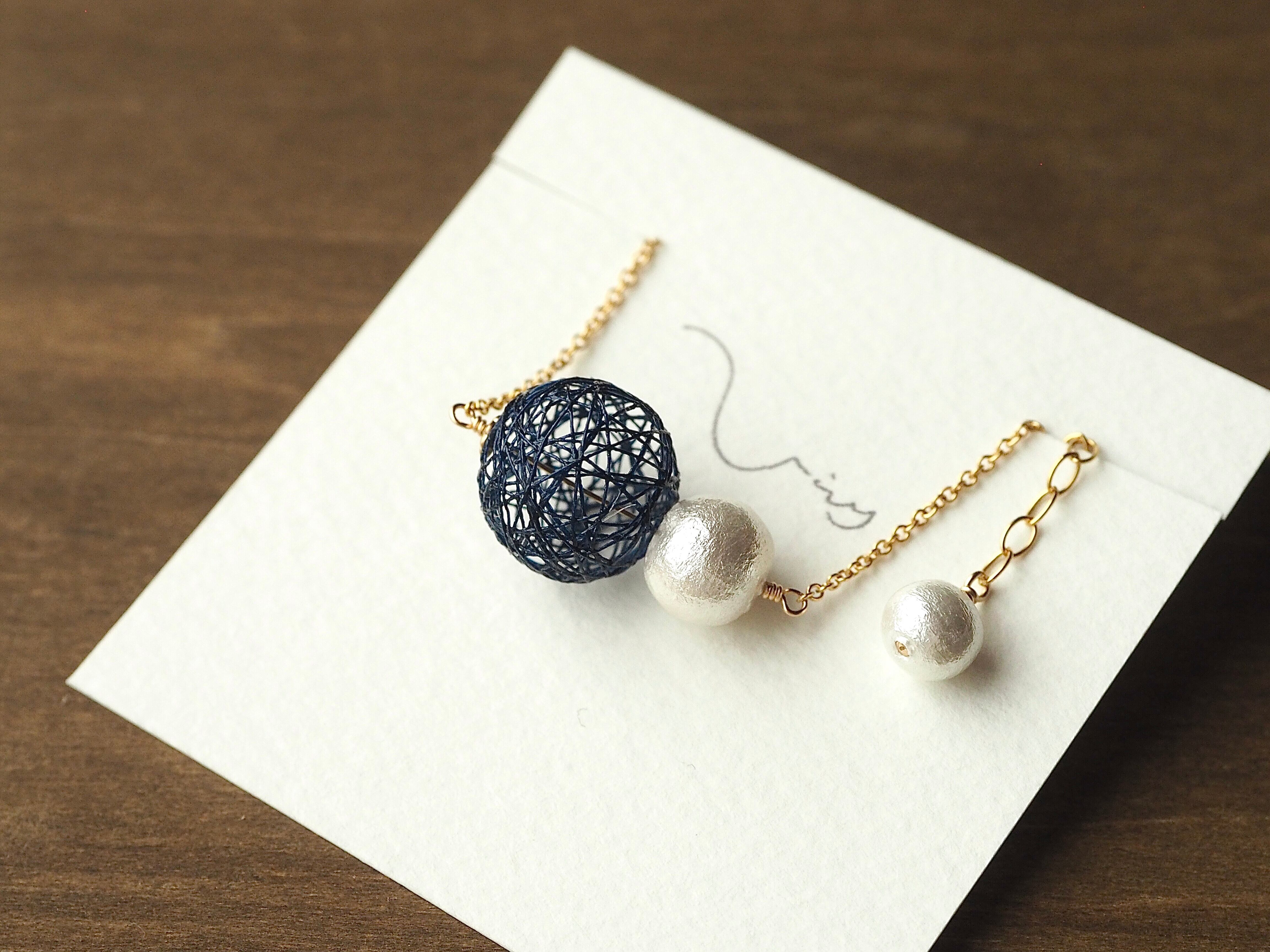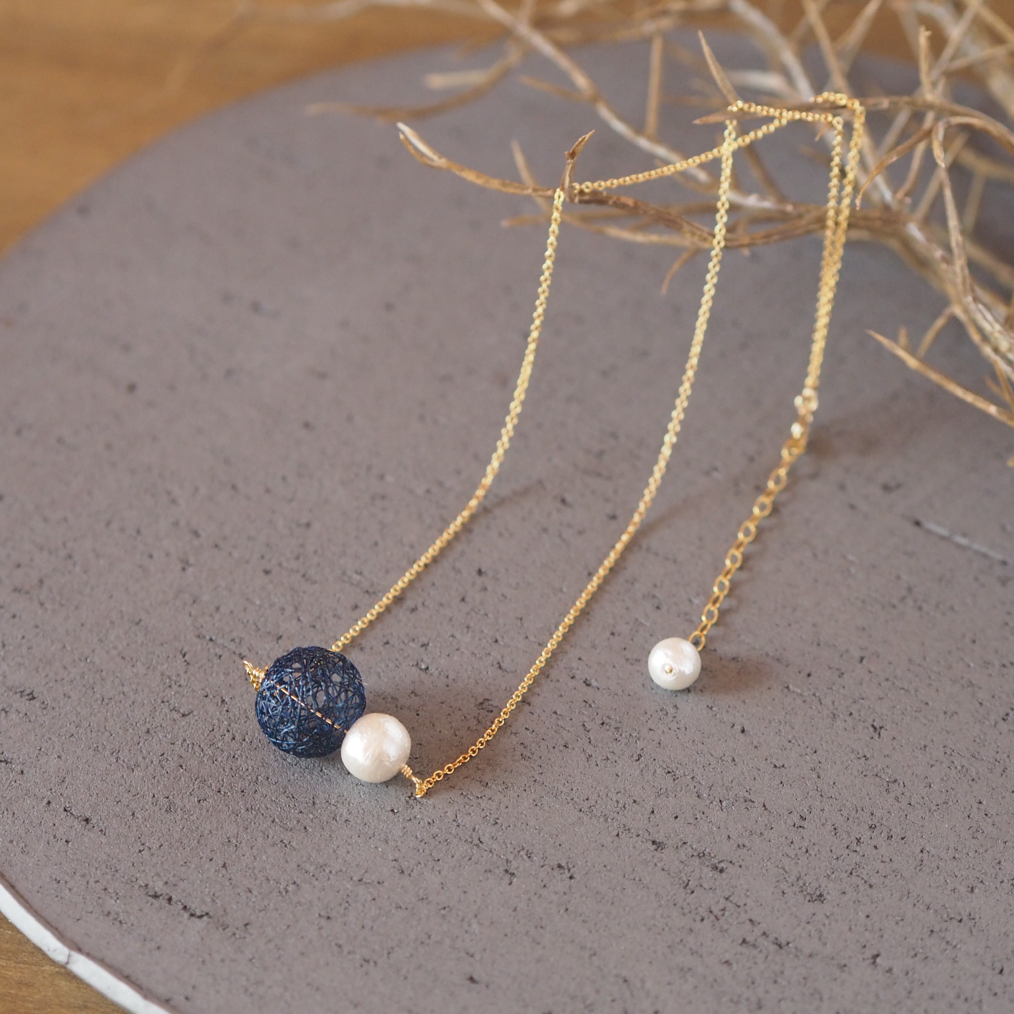 【糸玉ネイビーカラー・夜の雪のネックレス(38cm) [K14gf]】