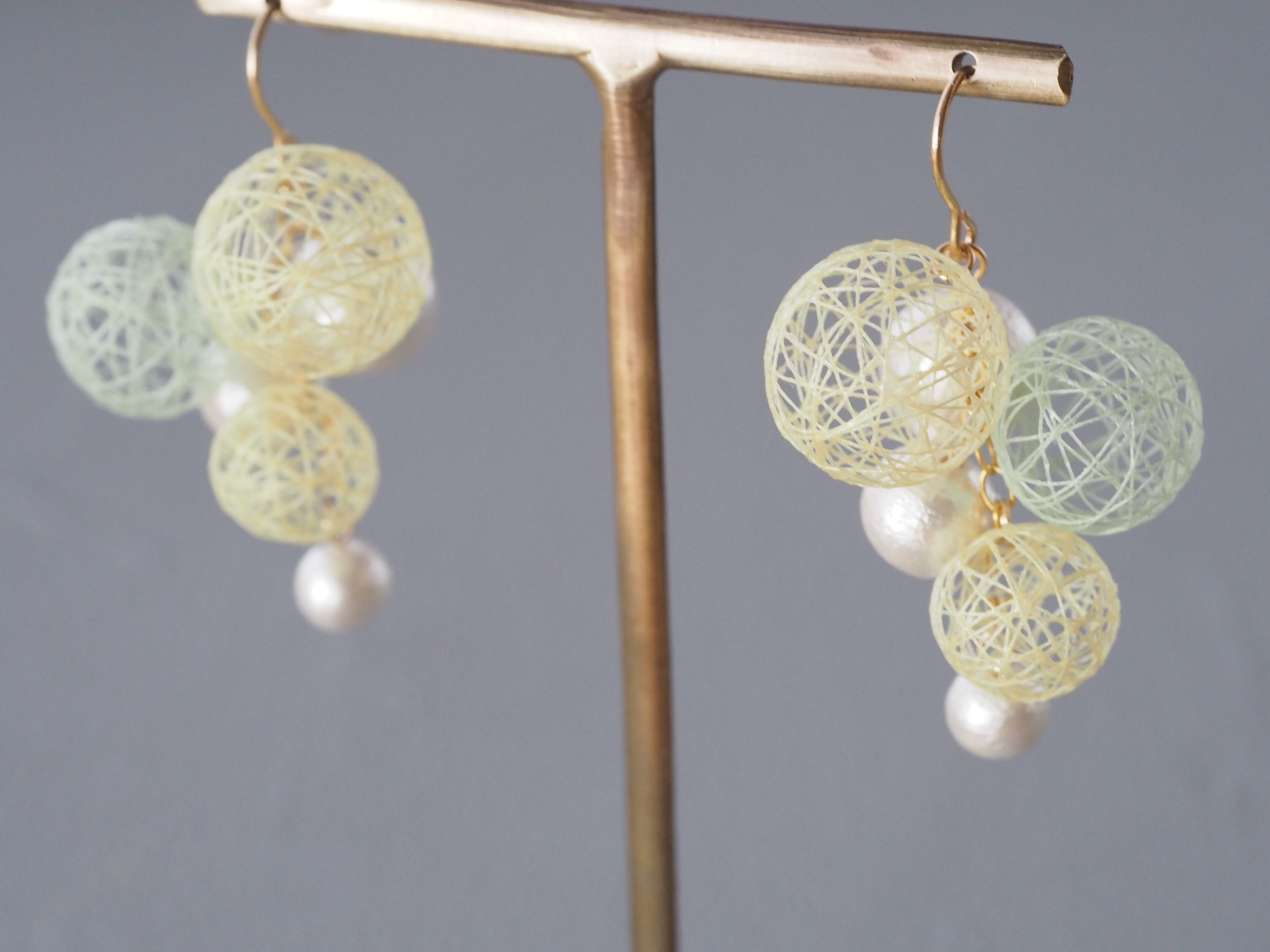 柔らかなイエローとグリーンの糸玉を交互に配して