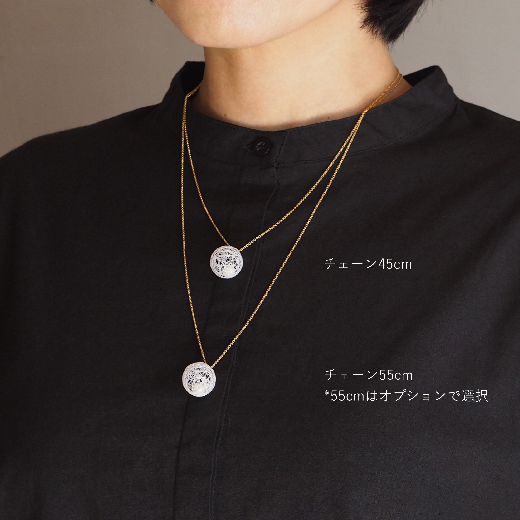 ネックレスは6mmの小粒なコットンパールを包み込んだ糸玉で